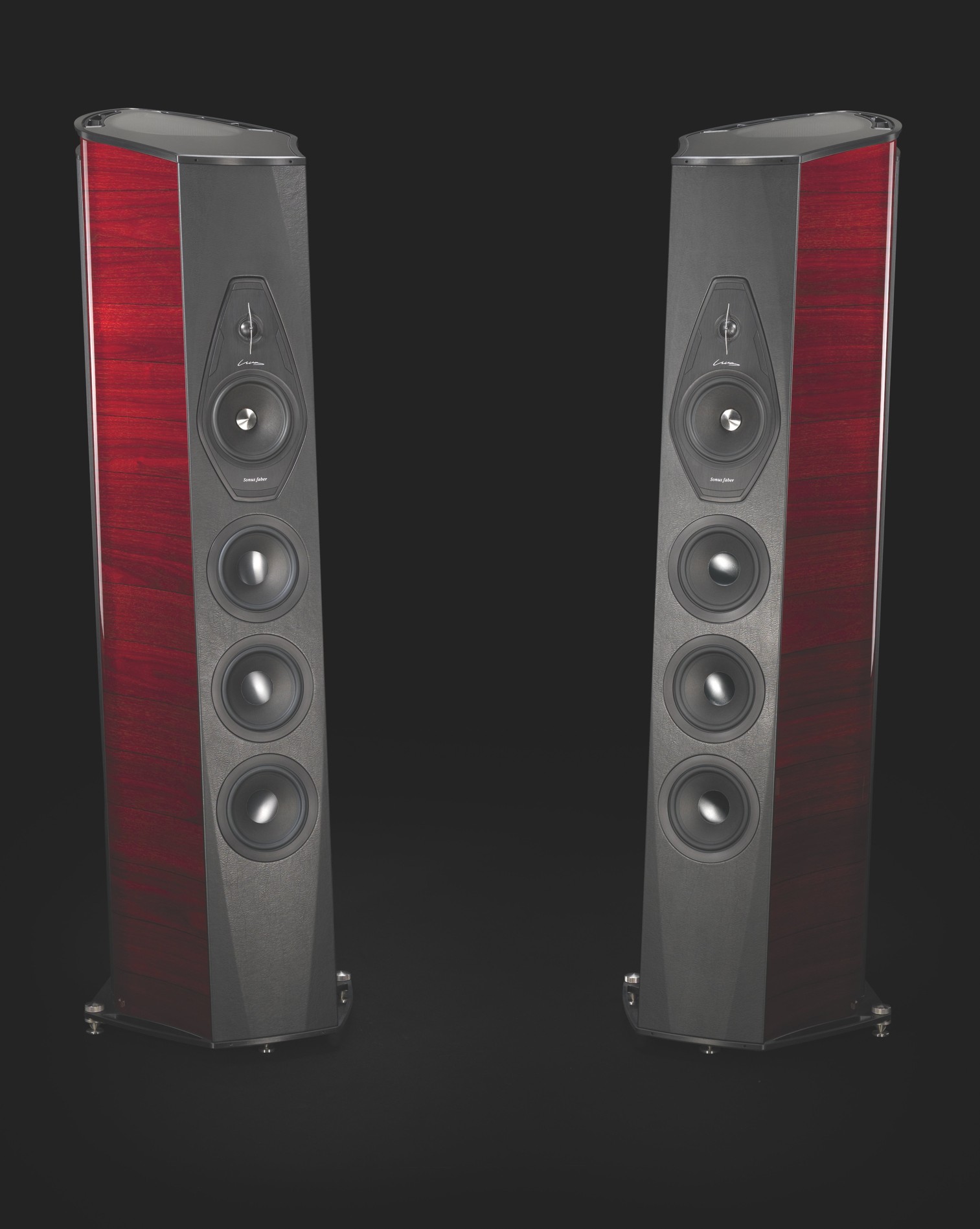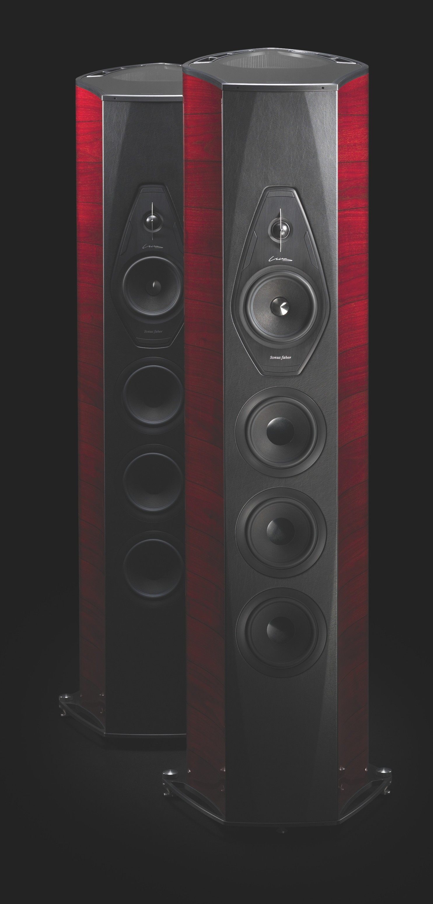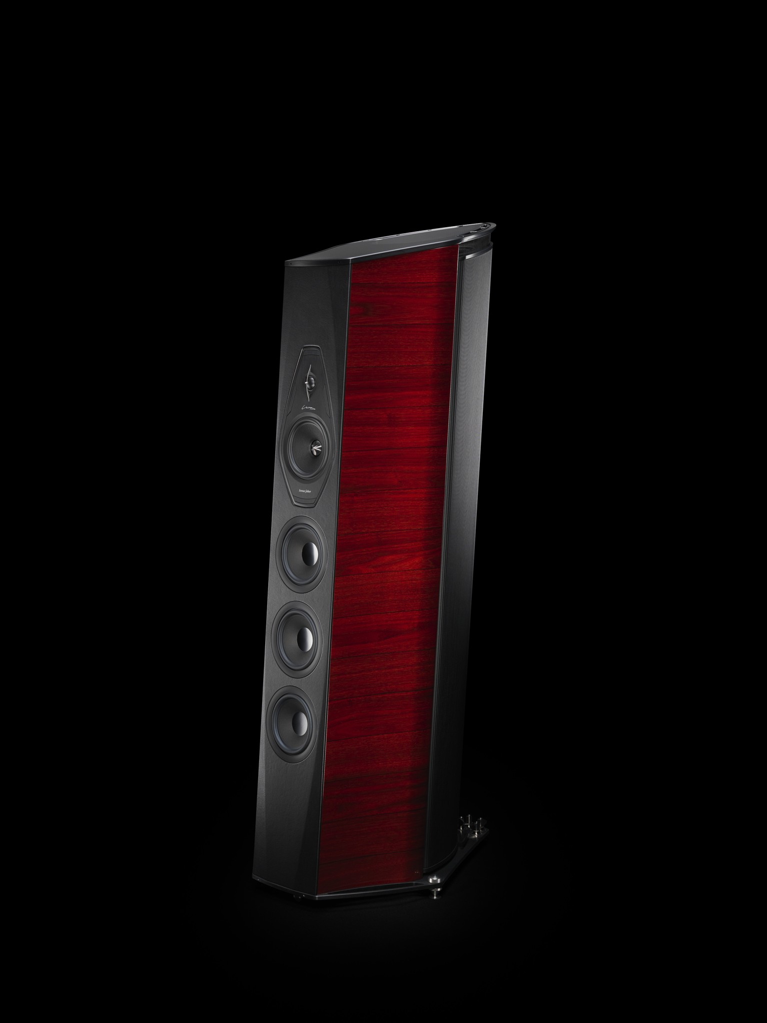 Como consecuencia de ello, la Lilium se puede considerar sin reservas como el “siguiente paso” en la obsesión de la legendaria firma italiana por liberar a sus diseños de todo tipo de vibraciones y ruidos no deseados. Los diseñadores de esta nueva, bellísima e imaginativa caja acústica también han jugado fuerte a la hora de escoger la configuración de altavoces. Así, para el sistema de emisión de subgraves se optó por utilizar un recinto independiente completamente aislado –aplicando una versión evolucionada de la “Zero Vibration Transmission Technology” de Sonus Faber- al que se añadió una solución directamente adoptada de la citada Extrema 30: el uso de un altavoz pasivo en vez del siempre más sencillo y ruidoso puerto bass-reflex. Un transductor que además de estar completamente desacoplado del resto se dispuso de tal modo que su eje de simetría –al igual que el del conjunto del subwoofer- fuese perpendicular (es decir, formando un ángulo de 90º) al del los demás transductores con el fin de evitar cualquier posible modulación directa o indirecta. Como es norma en los diseños de Sonus faber, todos los altavoces de la Lilium fueron íntegramente y expresamente desarrollados para la misma por el equipo de ingenieros de la firma italiana: tweeter de cúpula blanda DAD (“Damped Apex Dome”) de 29 mm de diámetro, altavoces de medios (1) y medios/graves (3) de 180 mm y 2 altavoces –uno activo y uno pasivo- de subgraves de 260 mm, estando el conjunto gestionado por un filtro divisor de frecuencias que toma prestadas algunas innovaciones de las Extrema 30 tanto a nivel de topología circuital (“Paracross Topoloy”) como de componentes. El resultado es una caja acústica con una curva de respuesta en frecuencia prodigiosa (20-35.000 Hz) y una sensibilidad muy cómoda (92dB/W/m) que le permite combinarse con un amplio abanico de electrónicas.