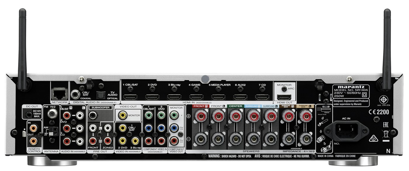 Asimismo, la recientemente añadida funcionalidad Bluetooth hace que la integración con dispositivos inteligentes basados en Android, los dispositivos “i” de Apple u ordenadores portátiles sea igual de rápida y simple. Gracias a la compatibilidad con el estándar DLNA, el usuario también puede reproducir por “streaming” contenidos de audio almacenados en dispositivos de almacenamiento masivo locales (unidades NAS), escuchar miles de emisoras de Radio de Internet o servicios de música online como Spotify Connect. Por su parte, los melómanos más exigentes podrán incluso disfrutar los formatos de audio más avanzados del momento, caso del Apple Losless, el Gapless, el FLAC HD 192/24 o el DSD. Junto a sus amplias posibilidades como “streamer” inalámbrico, el NR1605 aporta la calidad sonora que tanta reputación ha dado a Marantz gracias a una sección de amplificación separada. Así, el NR1605 incluye un amplificador de 7×90 vatios continuos por canal, así como descodificación de sonido envolvente Dolby TrueHD y DTS-HD. Un total de ocho entradas HDMI permiten manejar una extensa variedad de fuentes digitales, como por ejemplo un sintonizador de TV por satélite, un reproductor de BD/DVD o una consola de videojuegos, todo ello simultáneamente. Además, configurar el aparato es muy fácil gracias a la ayuda de la avanzada Interfaz Gráfica de Usuario (GUI) incorporada, el Asistente de Configuración y el sistema de medición de salas Audyssey MultEQ.
