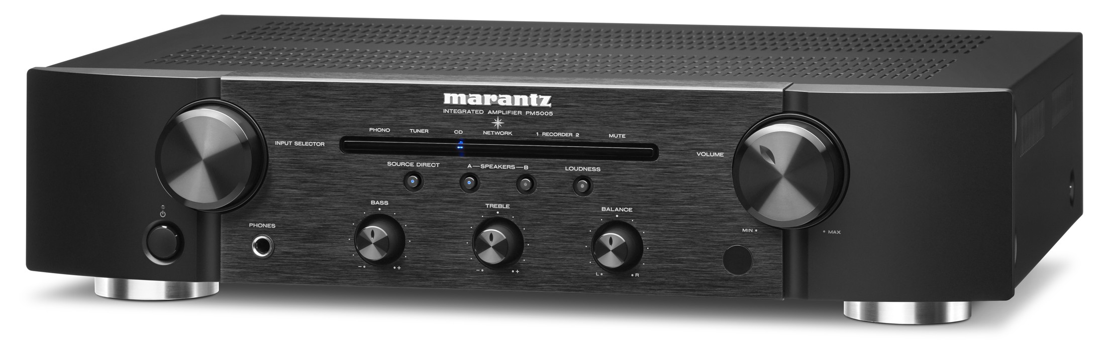El nuevo amplificador integrado de nivel básico PM5005 rompe todas las reglas al ser el primero de su clase que incluye topología de realimentación de corriente, una característica normalmente reservada para modelos más caros. Esta tecnología permite manejar la señal de audio de un modo rápido y preciso, siendo el resultado una reproducción estereofónica perfectamente equilibrada y una escena sonora muy abierta y detallada. El aparato también ha sido mejorado mediante la reciente adición de circuitos ejecutados con componentes discretos minuciosamente afinados para optimizar las prestaciones sonoras. Además, la estética del modelo de este año es más estilizada que la de su predecesor gracias al elegante diseño de los nuevos botones de control de volumen y selección de fuente.