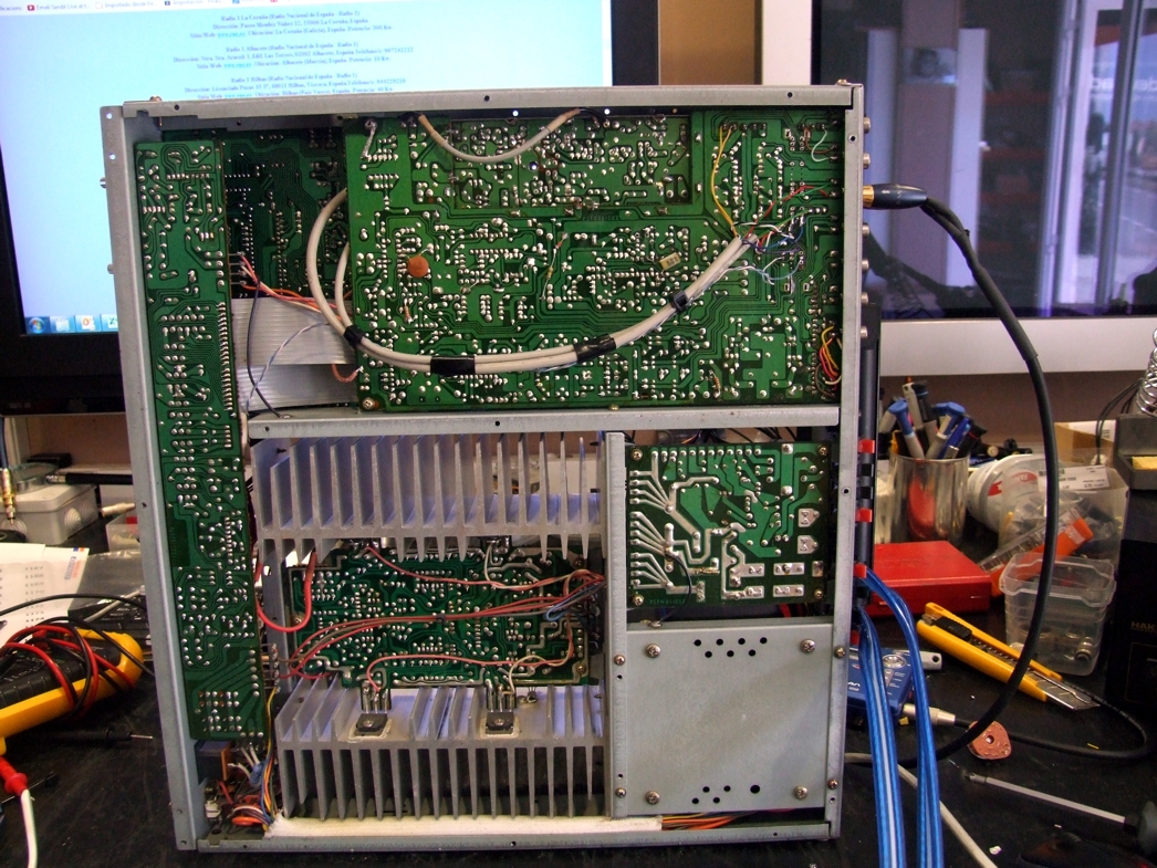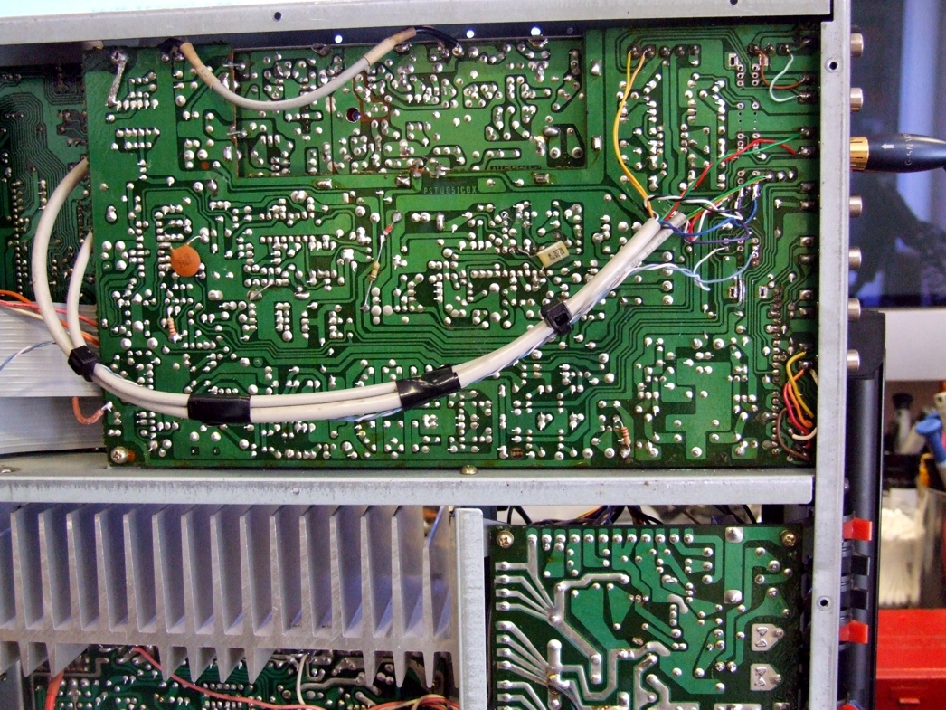 Tanto las entradas de Phono como Aux, sin problemas, ya que solo había que seguir los conectores de entrada en el caso del segundo, y para la entrada phono, buscar señal en la salida del previo RIAA, pero uno de los principales handicaps ha sido buscar tanto el punto de salida del sintonizador AM/FM, que es compartida, como las tensiones de alimentación para conmutar AM a FM.