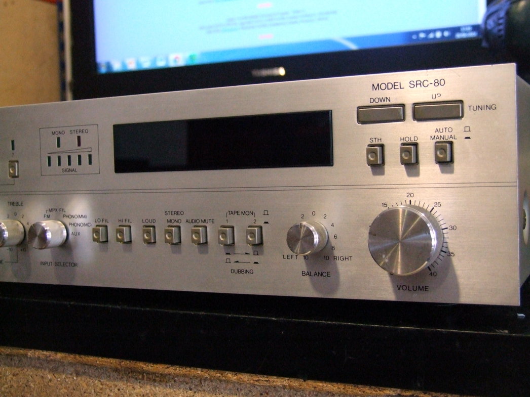 Nuestro invitado de hoy, un amplituner marca Cybernet modelo SRC-80, unidad de principios de los 80, que combinada amplificador integrado con entradas para Phono y una Auxiliar – era antes de la era del CD – dos entradas/salidas para grabadora y sintonizador AM/FM integrado.