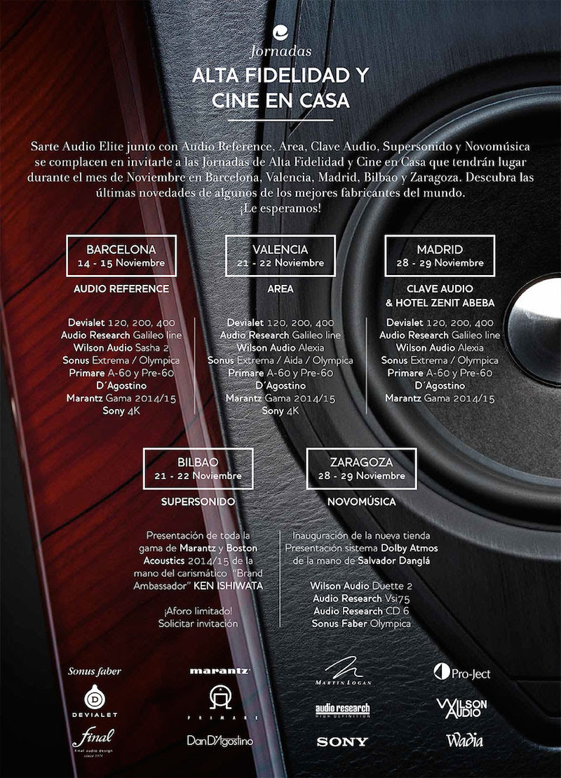 El prestigioso importador valenciano Sarte Audio nos invita a un noviembre de lujo con varias audiciones repartidas por toda la geografía española: