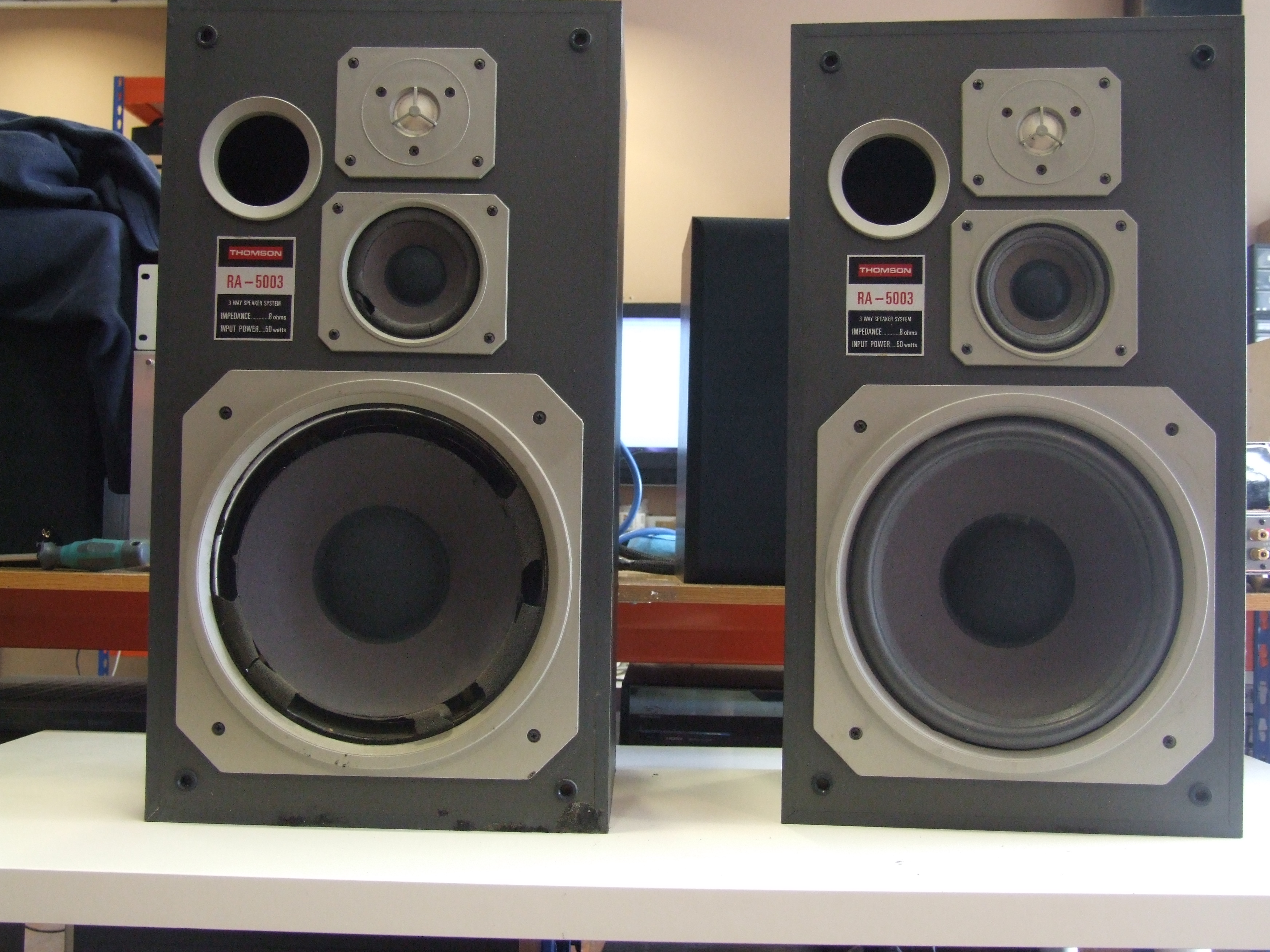 Puesta al día de unas cajas acústicas de la francesa Thomson, que nunca ha estado en la cima del audio y sus realizaciones las podemos catalogar de gama media dentro del espectro Hifi allá por los años 80, pero que si daban su pego. De Thomson también nace a finales del siglo XIX, General Electric y posteriormente rebautizada como Thomson-CSF siendo santo y seña de la electrónica francesa, tanto en aplicaciones comerciales, médicas como aplicaciones militares – toda la electrónica de los Mirage es del grupo Thomson. En la actualidad y a partir del año 2.000, el grupo se denomina Thales.