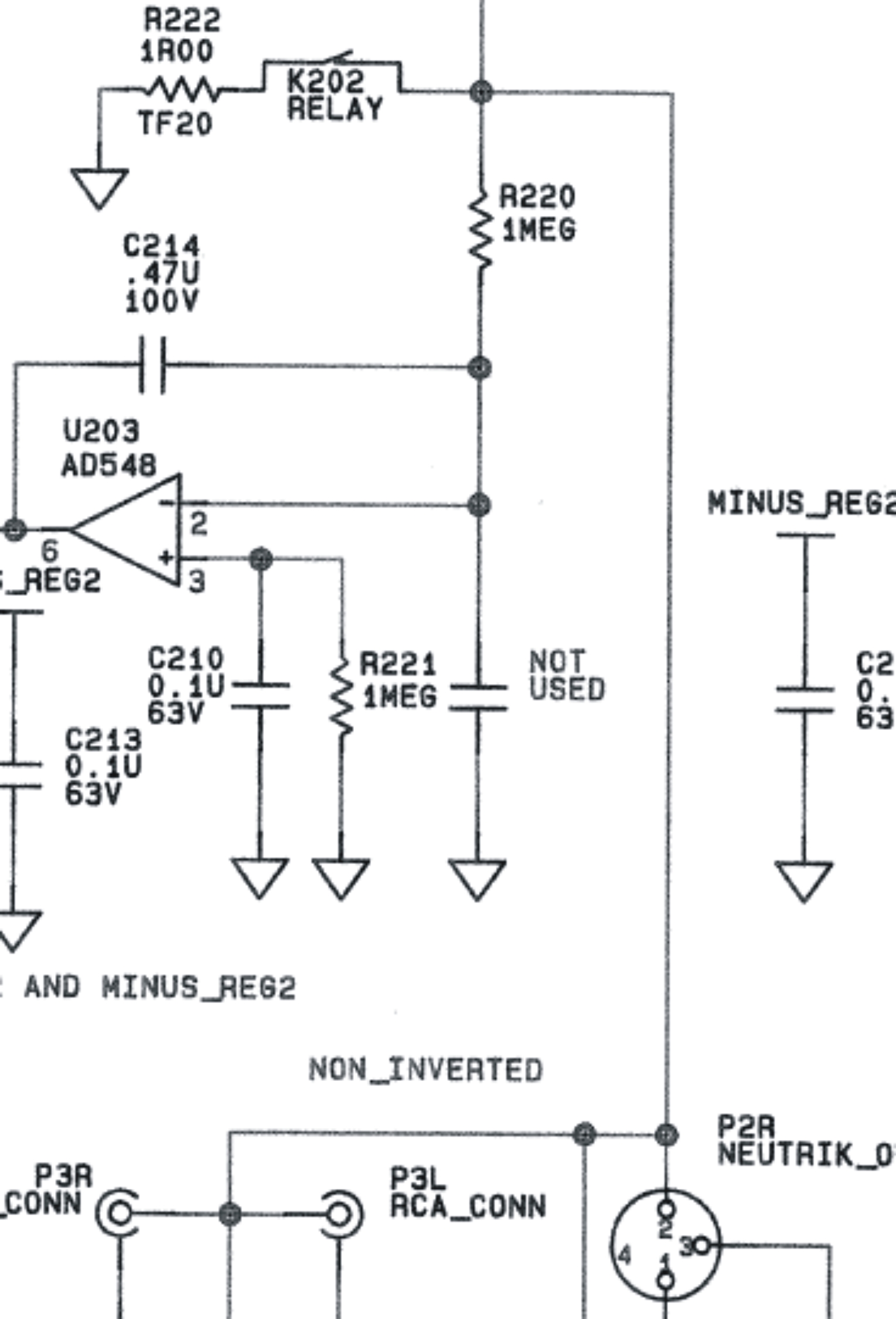 Aquí podemos ver como el Relé K202 lo que hace realmente es enviar la señal a masa, por lo tanto aunque tengamos señales en el DAC, éste trabaje correctamente, nunca tendremos señal en las correspondientes salidas a no ser que el circuito de «mute» trabaje totalmente liberado. Ahí residía esta segunda parte de la avería. El DAC trabajaba correctamente y teníamos señal en ambos canales, pero no en la salida, el mute se lo impedía. Vuelta a empezar a buscar. Y las informaciones de M&L son bastante complicadas de seguir.