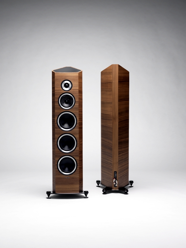 Profundizando en los detalles de la Venere S, lo primero que hay que destacar de esta esbelta columna de 3 vías y 5 altavoces (entre ellos 3 woofers de 180 mm de diámetro) es que, al contrario que sus compañeras de gama, incorpora un puerto bass-reflex de nuevo diseño en su zona inferior directamente encarado hacia el suelo, una solución que hace que la pureza del sonido no sea contaminada por las vibraciones espúreas generadas por los poderosos transductores que incorpora. Por otro lado, y aprovechando la experiencia ganada durante el desarrollo de la serie Olympica, los chasis de los altavoces de la Venere S han sido hechos a medida en metal de fundición basándose en el concepto “Ultra Free Compresión” y con el fin de minimizar la interferencia acústica generada por las partes móviles de los mismos. De los citados altavoces hay que destacar especialmente que todos ellos han sido fabricados a medida para Sonus faber. Así, los conos de los tres woofers de la Venere S están hechos en aluminio para maximizar la ligereza y la rigidez y, en consecuencia, la respuesta a los transitorios de baja frecuencia. Por su parte, el altavoz de medios, de 150 mm de diámetro, incluye una membrana de Curv, una fibra de polipropileno formada térmicamente que proporciona la solución idónea para conseguir una reproducción absolutamente natural de la parte principal del espectro de audio. En lo que respecta a los agudos, son confiados a un tweter de cúpula blanda de seda fabricado por la prestigiosa firma Dr. Kurt Mueller. En este caso, el tweeter está desacoplado mecánicamente mediante la interposición de un material flexible con el fin de hacer que el transductor pueda resistir las microvibraciones generadas por la intensa actividad del resto de altavoces. El resultado es una mejora sustancial de la precisión y la microdinámica que permite obtener una escena sonora extremadamente focalizada. Por su parte, el filtro divisor de frecuencias está ejecutado en su totalidad por componentes de grado audiófilo en una configuración semibalanceada concebida por Sonus faber. De este circuito también hay que destacar que, como es habitual en la marca italiana,utiliza un diseño no resonante con pendiente de corte progresiva y curva de respuesta en amplitud/fase optimizada para asegurar las mejores prestaciones posibles. Además, los woofers incorporan bobinas de filtrado “Trylobite Ultrafast”, mientras que las pistas de las placas de circuito impreso están fabricadas con ayuda de nano-tecnologías que maximizan la velocidad de transmisión de la señal de audio.