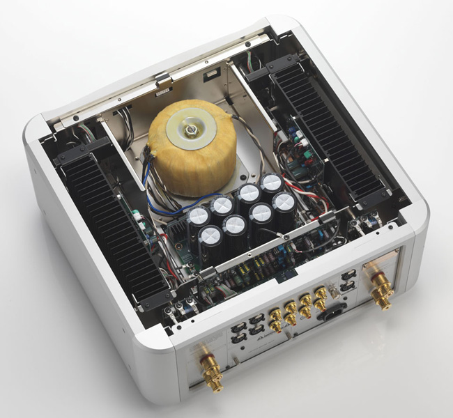 Más espectacular aún es la sección de amplificación de potencia del nuevo amplificador integrado de referencia absoluta de Esoteric, plasmada en un diseño push-pull configurado en Clase A pura que se aprovecha de los excepcionales, avanzados y exclusivos transistores MOSFET de carburo de silicio Esoteric Model200 (capacidad de entrega de corriente continua de 78 amperios e instantánea de 150 amperios), desarrollados conjuntamente por la firma japonesa en colaboración con la también japonesa New Japan Radio Co., Ltd. También aquí se recurre a una configuración doble monofónica y balanceada que ha sido pensada para maximizar la dinámica y la transparencia, en la que desempeña un papel esencial el imponente transformador de alimentación toroidal de 1.000 VA y muy bajo ruido hecho a medida y la batería de condensadores de 80.000 uF que lo acompaña. Gracias a ello, el Grandioso F1 entrega 30 vatios continuos en Clase A pura por canal a 8 ohmios o 60 vatios continuos en Clase A pura por canal a 4 ohmios con unos registros sensacionales en materia de capacidad dinámica, definición y presentación espacial.