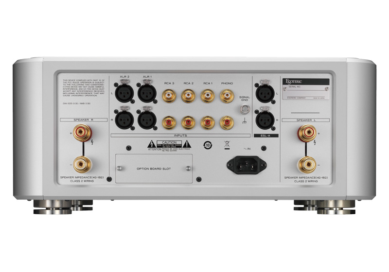 A ello contribuye también una innovación técnica exclusiva de Esoteric: la conexión “ES-LINK Analog”, que se suma a la tradicional con conectores XLR y RCA y permite, gracias a sus características únicas, establecer un enlace ideal para la transmisión de señales de audio cuando se utiliza con componentes compatibles. En concreto, este sistema de conexión se basa en la transmisión de señales de corriente, para lo que se aprovecha de las elevadas prestaciones de la sofisticada etapa separadora HCLD del Grandioso F1y la capacidad de la misma para entregar una señal de gran amplitud y de alta velocidad a fin de garantizar una transmisión de la señal de audio extraordinariamente pura y robusta.
