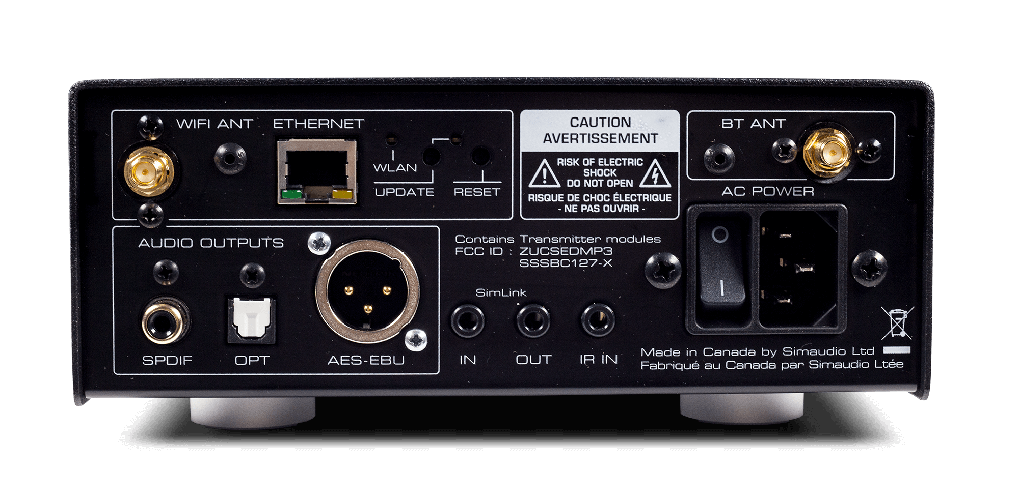 Sus salidas de sonido son digitales (óptica Toslink, S/PDIF y AES/EBU), para poder enviar el sonido puramente digital a un DAC, evitando la corrupción de la señal. Es compatible con Wi-Fi y cuenta con conexión a Ethernet para poder acceder mediante la red doméstica a la música almacenada en dispositivos móviles, ordenadores o servidores NAS conectados de la forma más fácil para el usuario. Con la inclusión de tecnología Bluetooth aptX, ofrece una conectividad sencilla con los dispositivos móviles para realizar un streaming de sonido instantáneo que alcanza calidad CD (16bit/ 44,1 kHz).