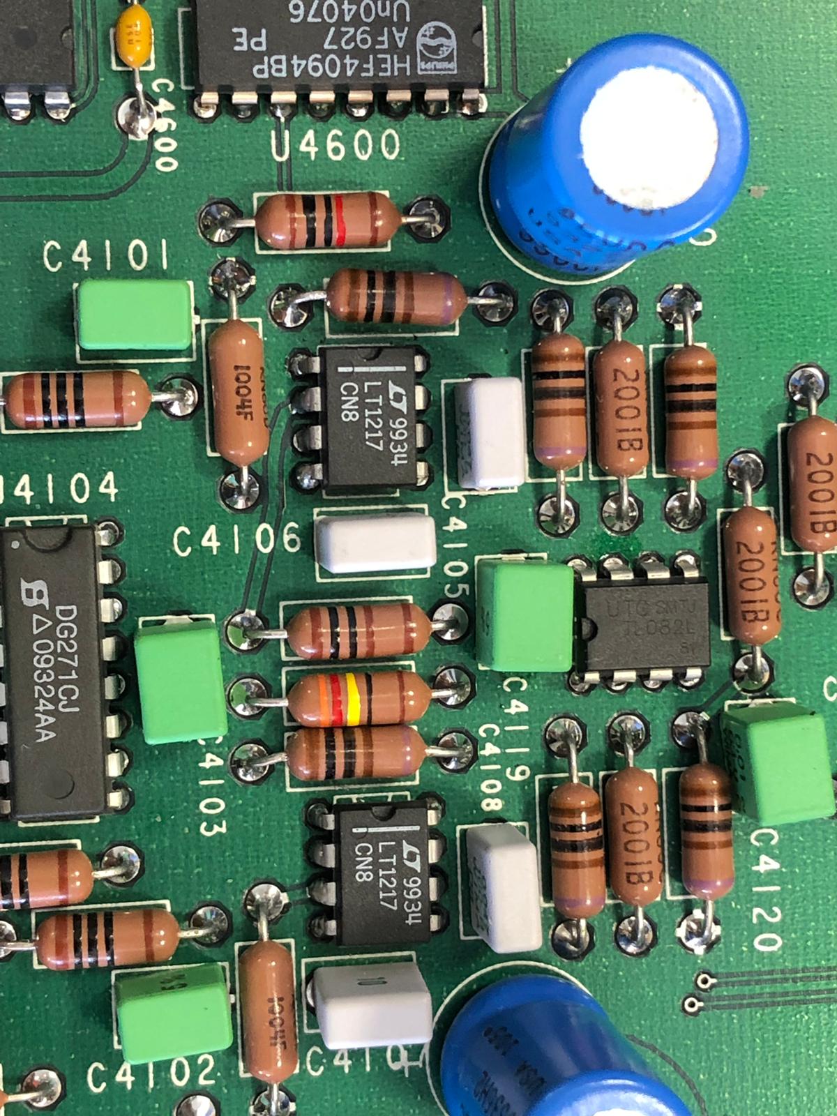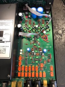 Nos entra para su reparación este previo de Mark Levinson, un Nº38, con el problema de que al mover el volumen, el canal izquierdo hace ruidos – petardeos – e incluso nos parece que pueda llegar a dañar o bien a etapa de potencia o a caja acústica. Primera medida, salida audio tanto RCA como balanceada, efectivamente tenemos componente contínua en dicha salida.