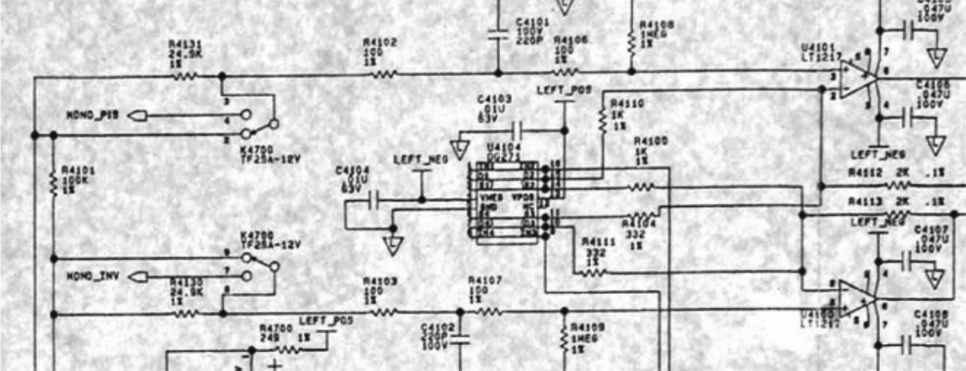 Esquema en mano, empezamos a testear y seguimos orden inverso. Si en salida tenemos una tensión contínua, variable con el nivel de volumen, dado que es una configuración doble monofónica y en el otro canal no tenemos ningún problema, empezamos a retroceder.