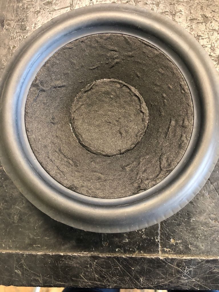 En primera instancia nos tememos que todo el problema venga de la bobina y una comprobación con el multímetro así nos lo cofirma. Toca desarmar dicha unidad. Para ello hay que levantar la suspensión, de goma en este caso, que facilita el trabajo. La parte más delicada es levantar la “suspensión Spider” y preferentemente, sin dañarla. Paciencia y poco a poco lo hacemos, así que ya tenemos por una parte la “araña” y por la otra el conjunto bobina-suspensión-cono.
