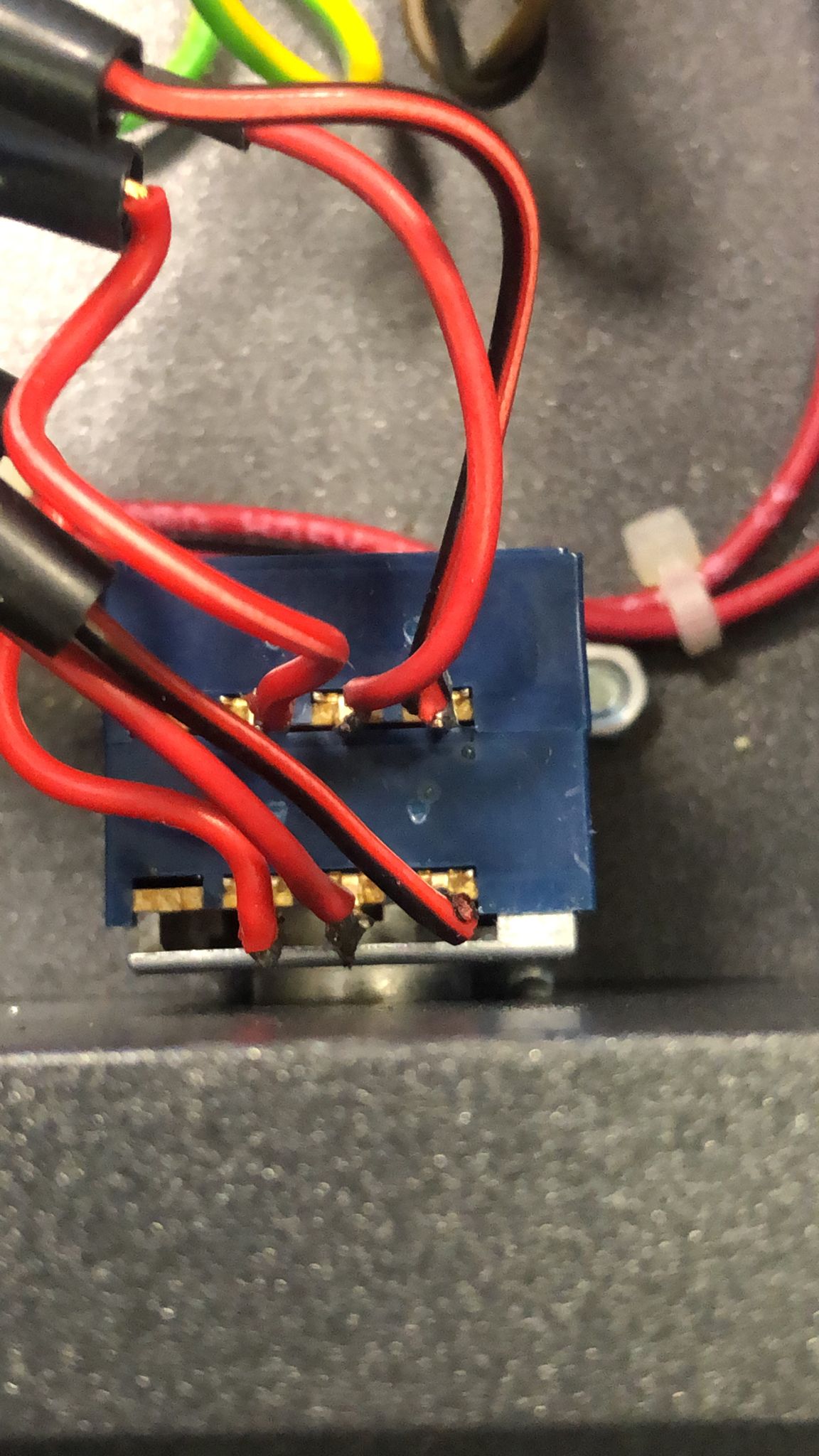 Una vez sustituido, probamos y aparte de se nota la mejora en el audio, vemos que el circuito de filtraje de las tensiones de la etapa de potencia, montan un grupo de condensadores en paralelo, de 470 uF, que consideramos que puede mejorar sustancialmente.