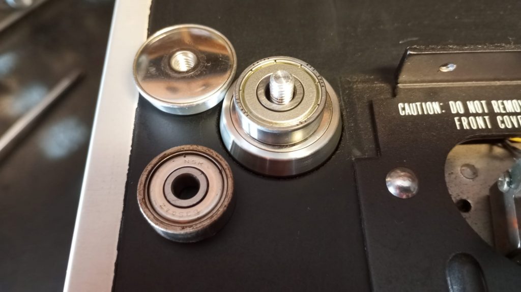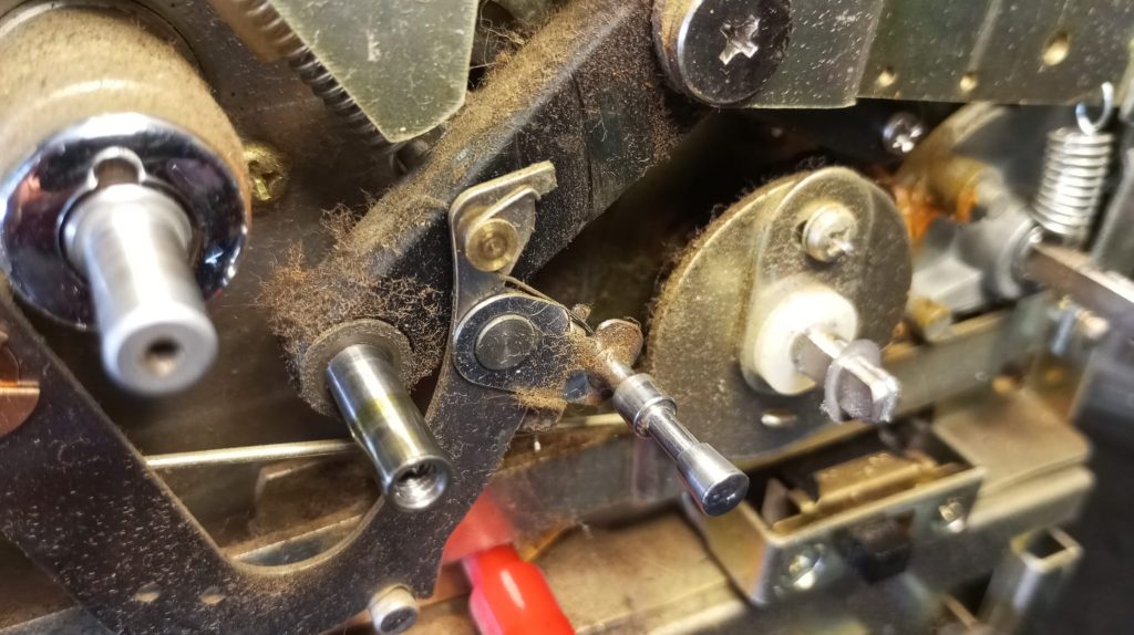 No hace falta decir nada. El Pinch roller, como unidad básica de transmisión así estaba. Tocaba rectificarlo y limpiarlo. Más que nada tanto por el precio de ocasión de la unidad, como del precio de la reparación. Su precio, 91 € + portes, que se nos va a los 110 €, demasiado para esta unidad. Lo hemos recuperado. Correa de arrastre, otra que tal, unos 34 € puesta en casa. Si sumamos pinch roller + correa, ya nos vamos a 140 €. Coste demasiado elevado para esta unidad, que ronda los 350 €, pero a saber su estado.