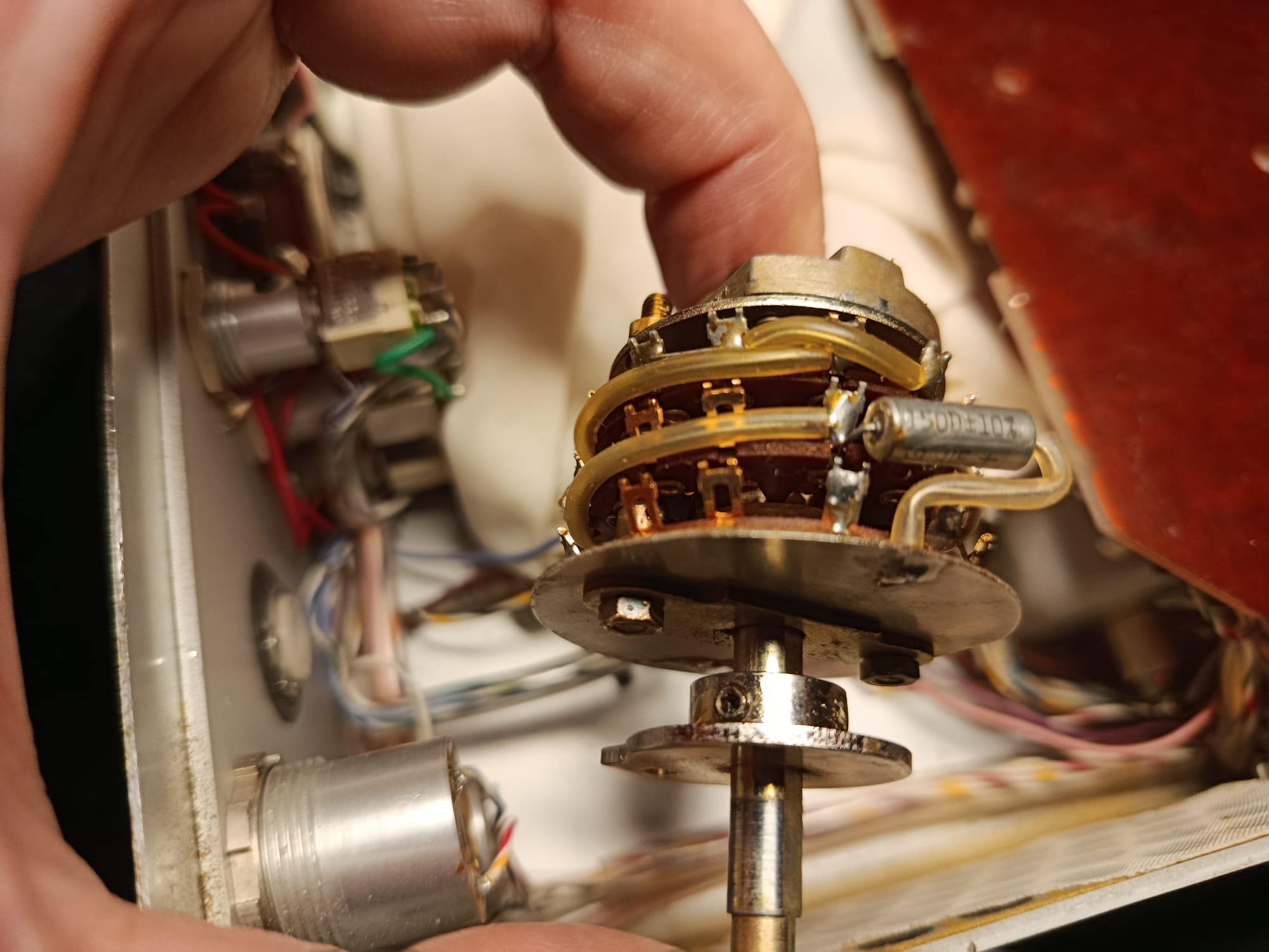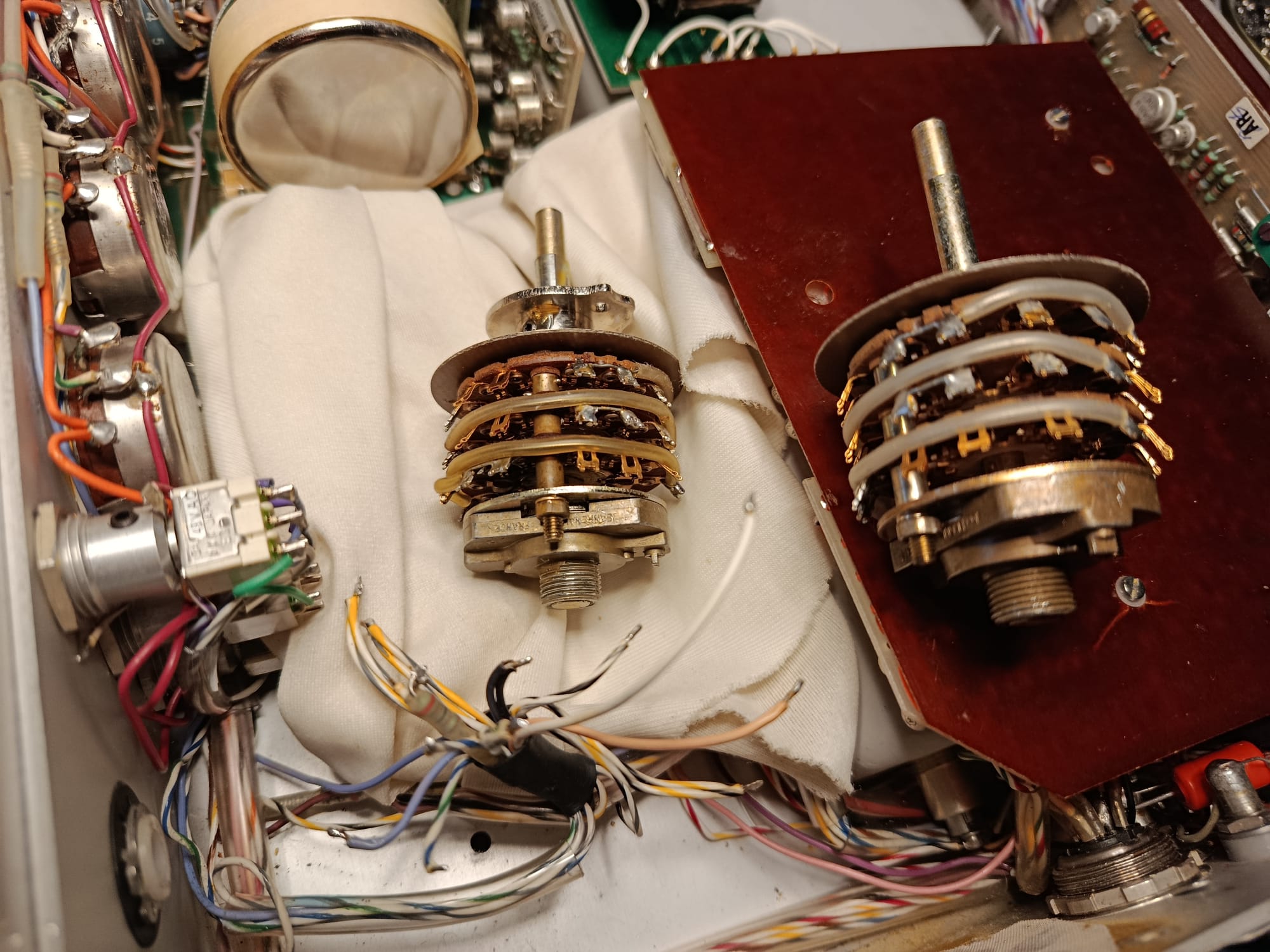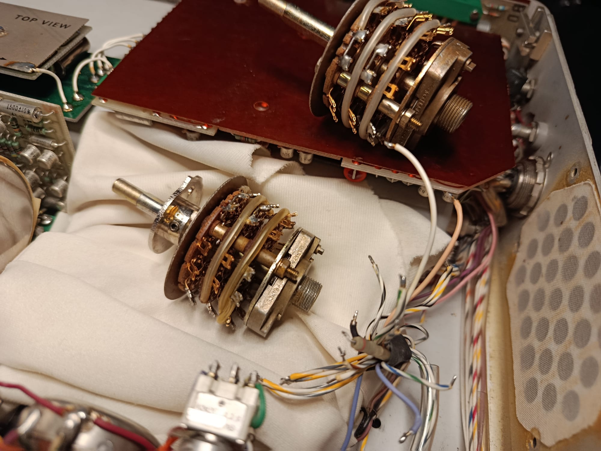 Continuamos con nuestra reparación de esta fabulosa unidad. Una vez aceptado el presupuesto de reparación, toca localizar sustituto del repuesto. Empezamos a buscar y rebuscar. No en vano, como hemos explicado, esta unidad tiene sus años y puede ser muy complicado la localización de repuestos. Buscamos, buscamos y encontramos unidades (selector de funciones)… evidentemente de ocasión. Somos muy inconformistas y nos gusta poder ofrecer lo mejor, así que continuamos buscando. La suerte nos sonrie, y localizamos un distribuidor que dispone de alguna unidad – y otros repuestos Nagra – completamente nuevos !!!!… Dispone de un par, y nos quedamos con las dos unidades. Una al cajón de repuestos, por si en otra ocasión necesitamos otra unidad. Ya podemos ponernos manos a la obra !!!.
