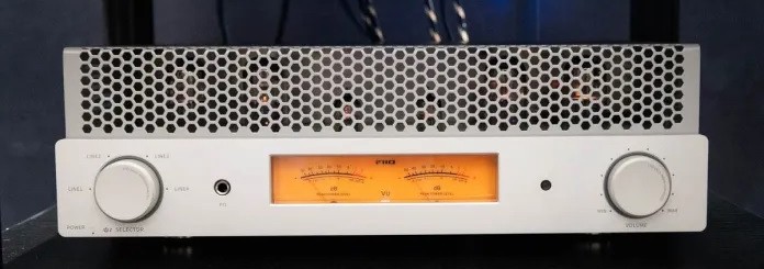 En el plano estético, FiiO consolida una trayectoria estilística ya evidente en los productos más recientes. De hecho, el EA13 luce válvulas visibles protegidas por una tapa de metal perforada, vúmetros analógicos en el panel frontal y controles giratorios que hacen referencia directa a la iconografía vintage de los años 70 y 80. Una señal precisa dirigida a un público que también busca una experiencia visual y táctil en Hi-Fi. El apartado de conectividad es deliberadamente esencial y desprovisto de cualquier componente digital: cuatro entradas RCA para fuentes analógicas, salidas dedicadas para altavoces de 4 y 8 Ohmios y una salida frontal de auriculares.